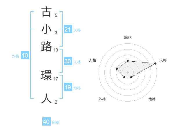 古小路 環人さんの天格は21画の5点!