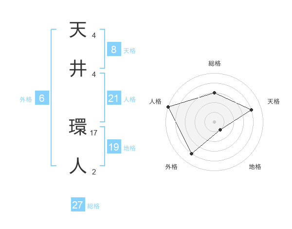 天井 環人さんの総格は27画の3点!