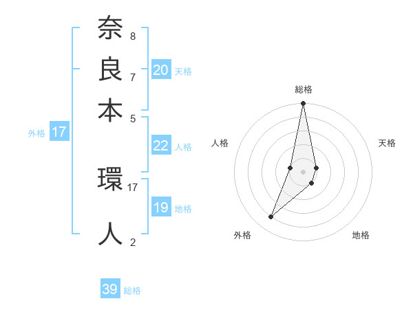 奈良本 環人さんの総格は39画の5点!