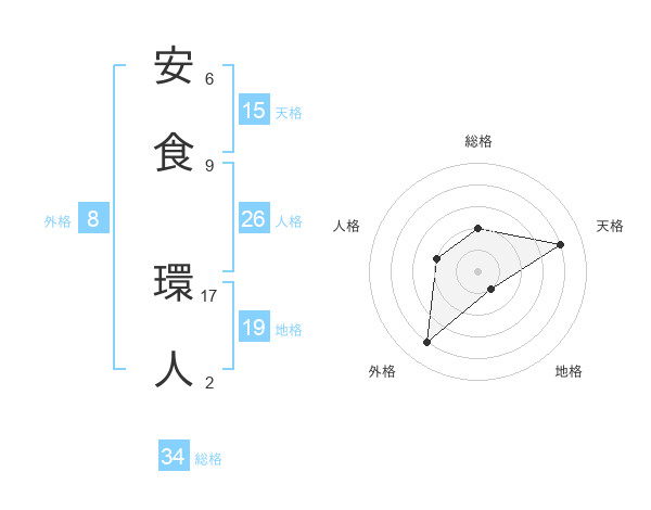 安食 環人さんの天格は15画の4点!