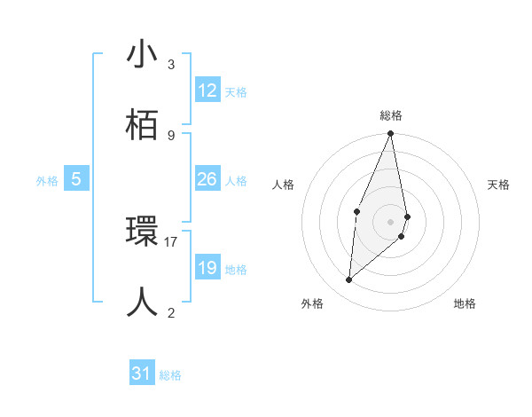 小栢 環人さんの総格は31画の5点!