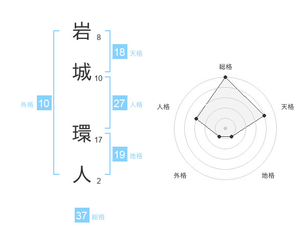 岩城 環人さんの総格は37画の5点!