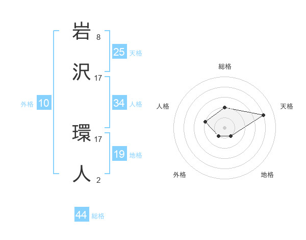岩沢 環人さんの総格は44画の2点!