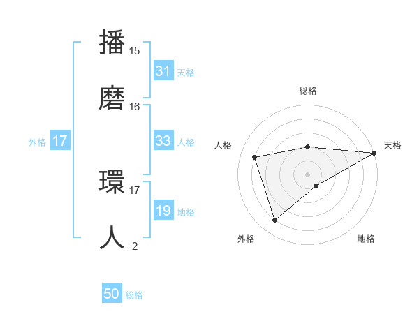 播磨 環人さんの総格は50画の2点!