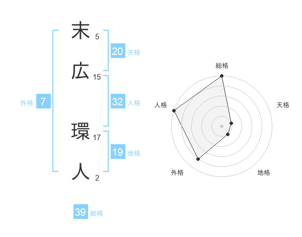末広 環人さんを姓名の画数から五運を鑑定