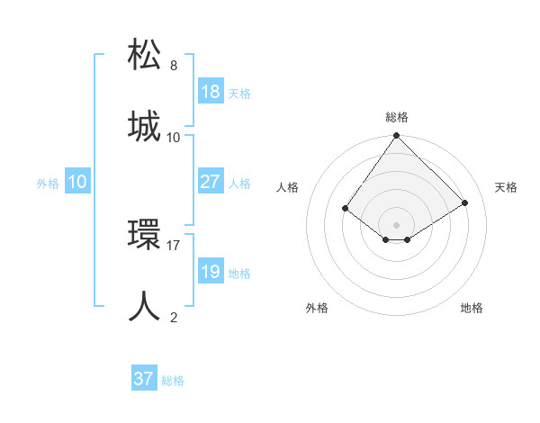 松城 環人さんの総格は37画の5点!