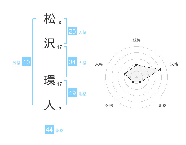 松沢 環人さんの総格は44画の2点!