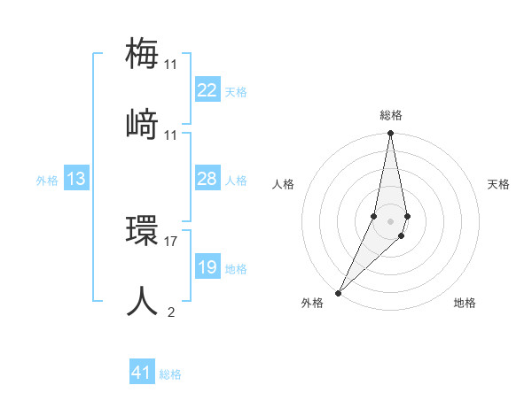 梅﨑 環人さんの外格は13画の5点!