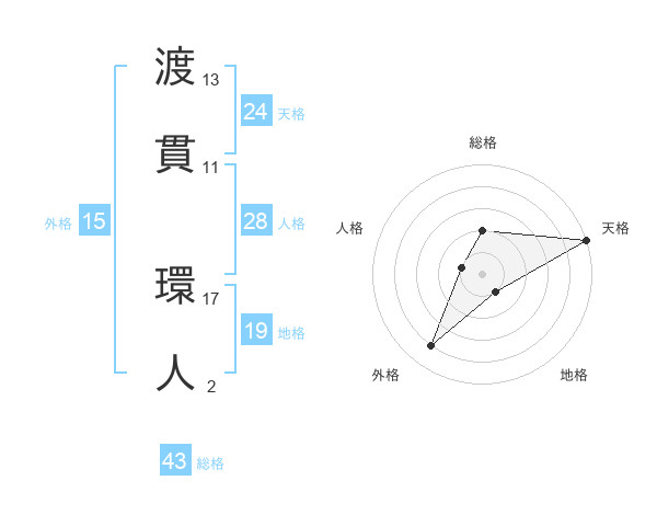 渡貫 環人さんの天格は24画の5点!