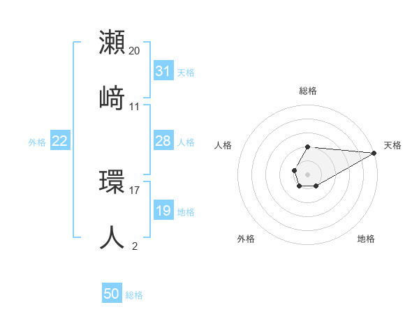 瀬﨑 環人さんを姓名の画数から五運を鑑定