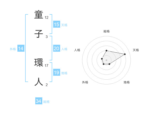 童子 環人さんの総格は34画の2点!
