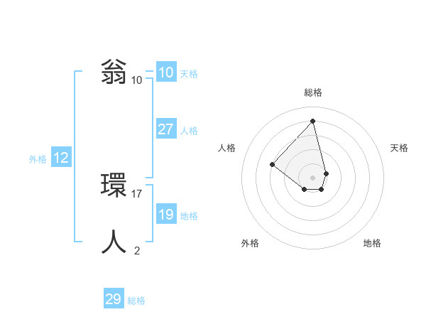 翁 環人さんの総格は29画の4点!