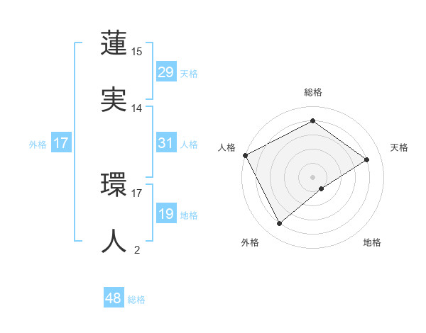 蓮実 環人さんの天格は29画の4点!