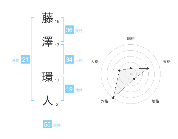 藤澤 環人さんの総格は55画の1点!