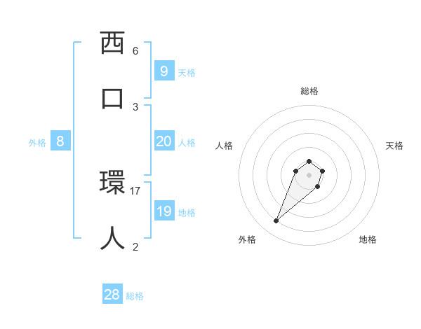 西口 環人さんの総格は28画の1点!