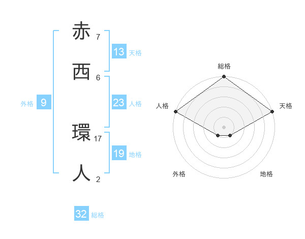 赤西 環人さんの総格は32画の5点!
