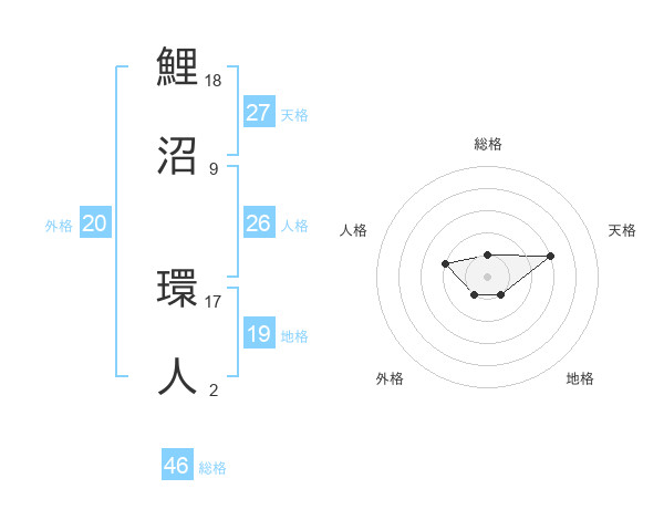 鯉沼 環人さんの総格は46画の1点!