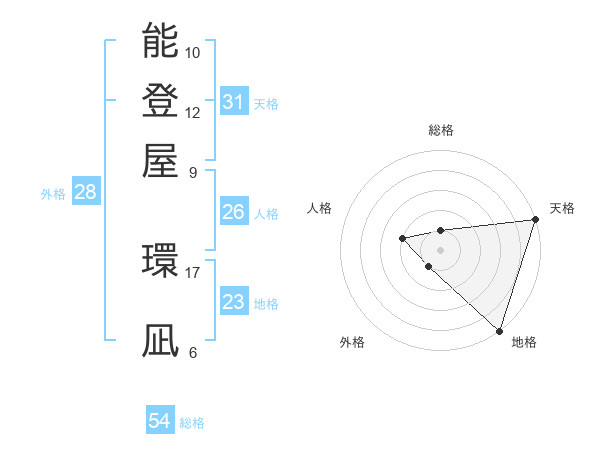 能登屋 環凪さんを姓名の画数から五運を鑑定