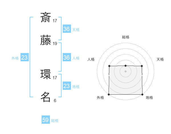斎藤 環名さんを姓名の画数から五運を鑑定