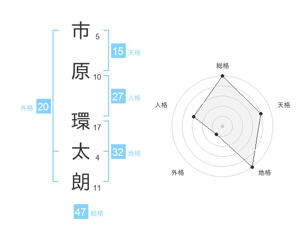 市原 環太朗さんの総格は47画の5点!
