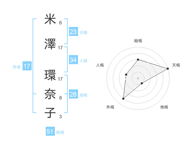米澤 環奈子さんを姓名の画数から五運を鑑定