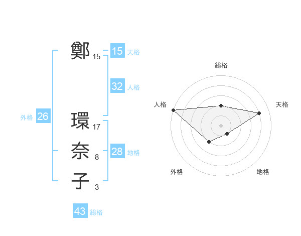 鄭 環奈子さんを姓名の画数から五運を鑑定