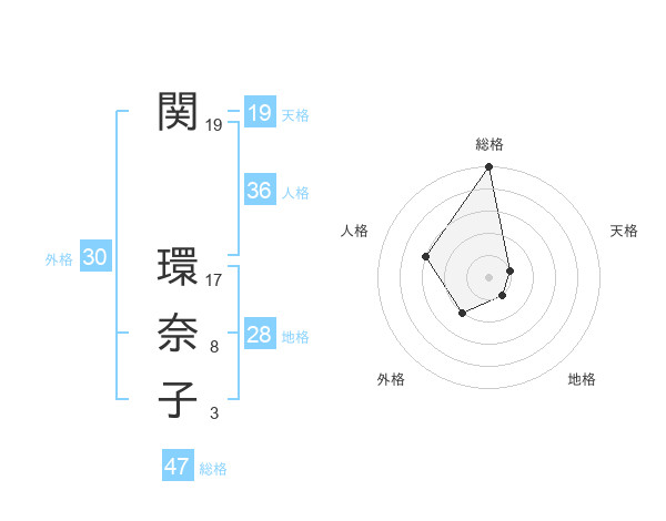 関 環奈子さんの総格は47画の5点!