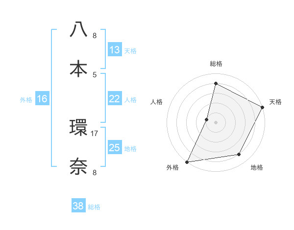 八本 環奈さんの天格は13画の5点!