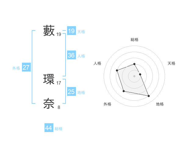 藪 環奈さんの総格は44画の2点!
