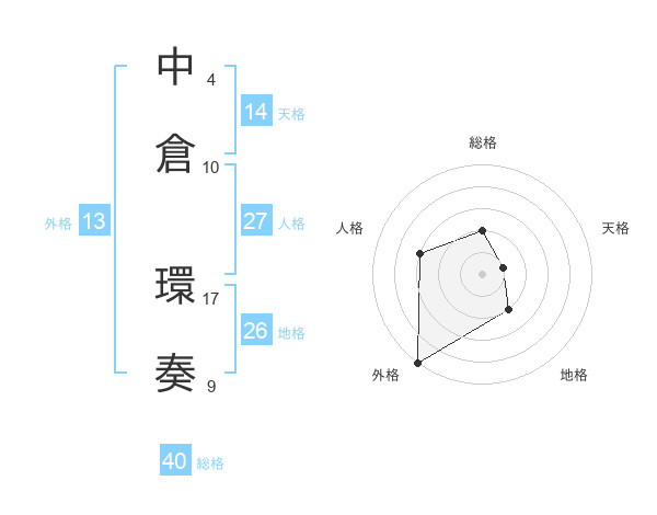 中倉 環奏さんの総格は40画の2点!