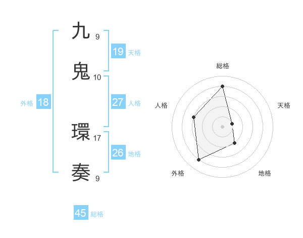 九鬼 環奏さんの外格は18画の4点!