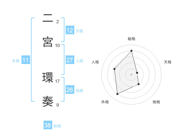 二宮 環奏さんの総格は38画の4点!