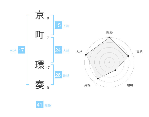 京町 環奏さんの天格は15画の4点!