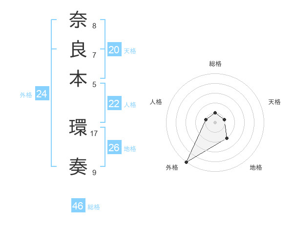 奈良本 環奏さんの外格は24画の5点!