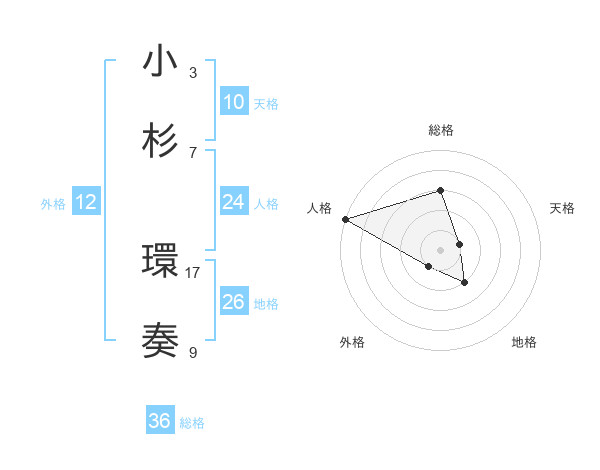 小杉 環奏さんを姓名の画数から五運を鑑定