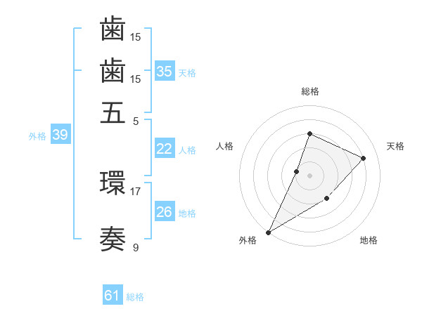 歯歯五 環奏さんの外格は39画の5点!
