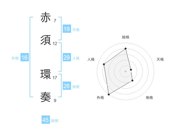 赤須 環奏さんの外格は16画の5点!
