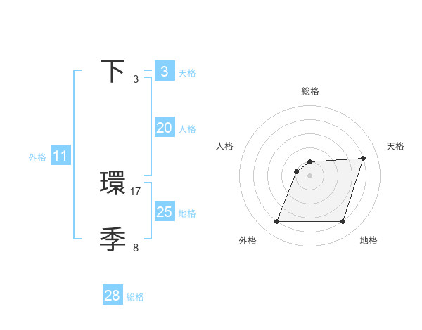 下 環季さんの総格は28画の1点!