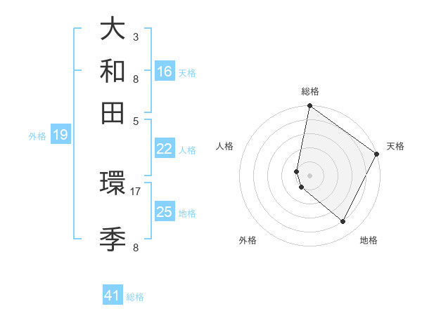 大和田 環季さんの天格は16画の5点!