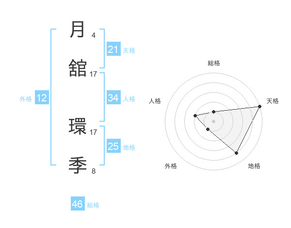 月舘 環季さんの総格は46画の1点!