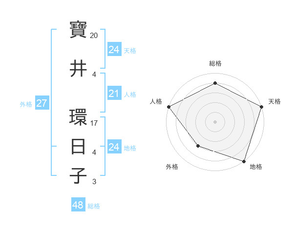 寶井 環日子さんを姓名の画数から五運を鑑定