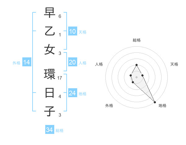 早乙女 環日子さんの総格は34画の2点!