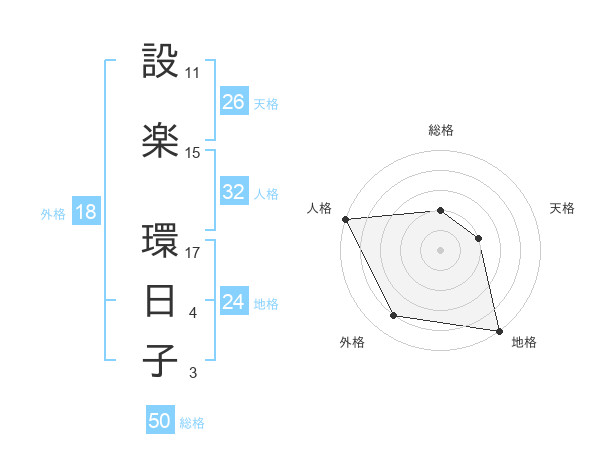 設楽 環日子さんの総格は50画の2点