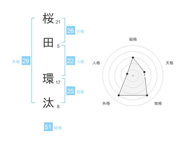 桜田 環汰さんの総格は51画の3点!