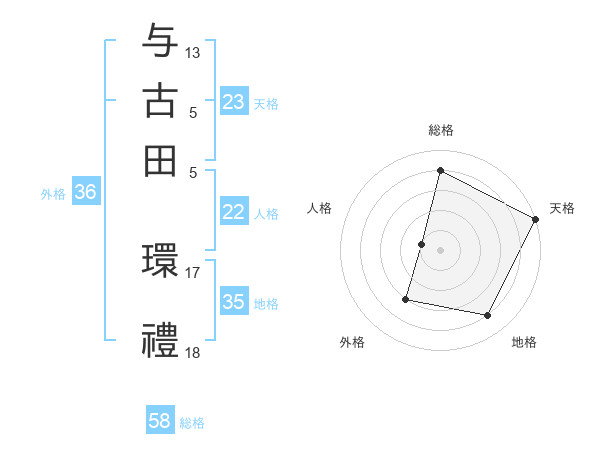 与古田 環禮さんを姓名の画数から五運を鑑定
