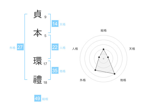 貞本 環禮さんを姓名の画数から五運を鑑定
