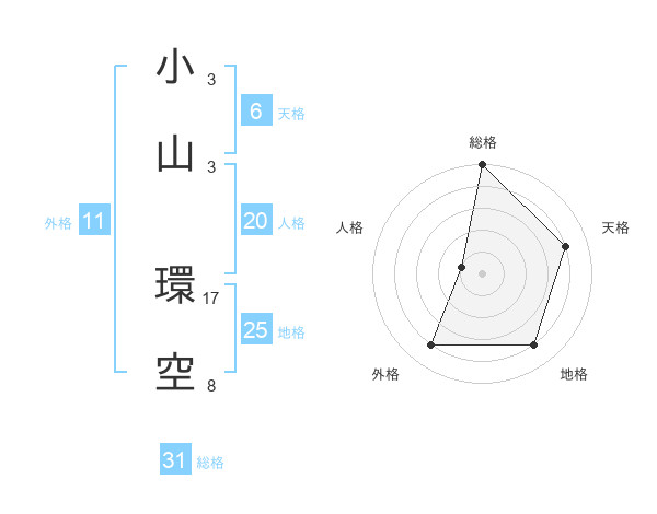 小山 環空さんの総格は31画の5点!