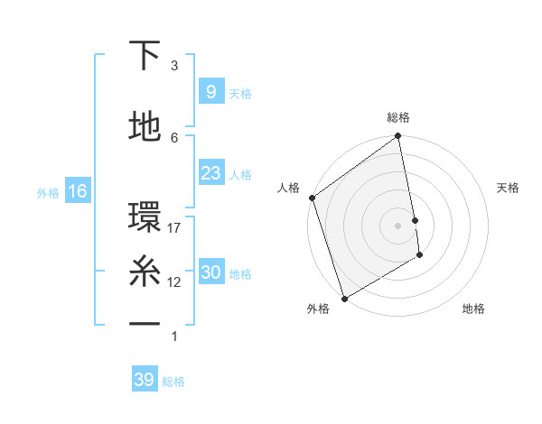 下地 環糸一さんの総格は39画の5点!