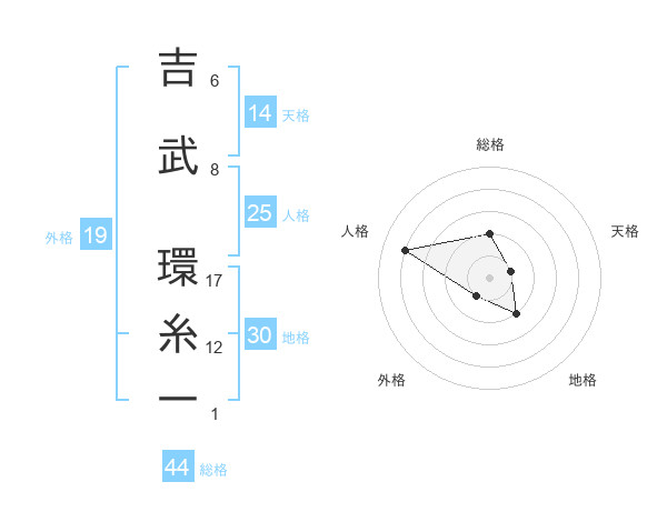 吉武 環糸一さんの総格は44画の2点!