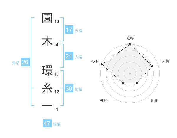 園木 環糸一さんを姓名の画数から五運を鑑定